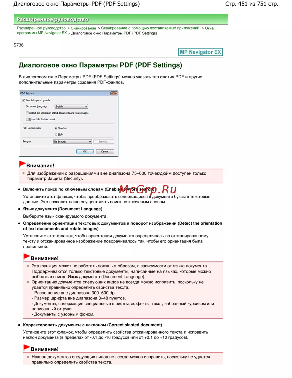 Canon Pixma MP280 — руководство по настройкам PDF для сканирования документов [451/751]