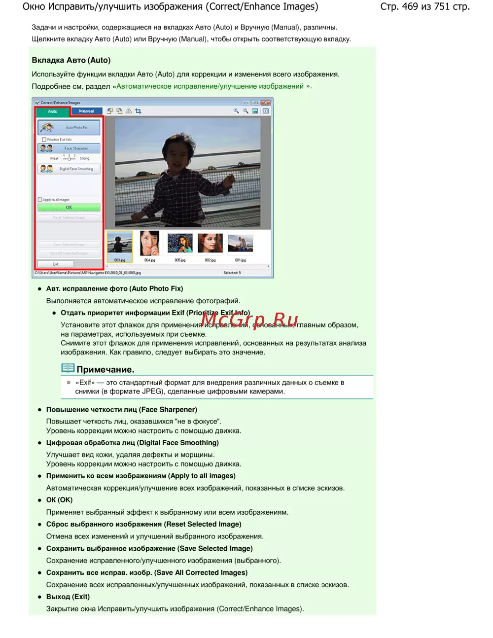 Стр. 469 из 751 стр.Окно Исправить/улучшить изображения (Correct/Enhance Images)