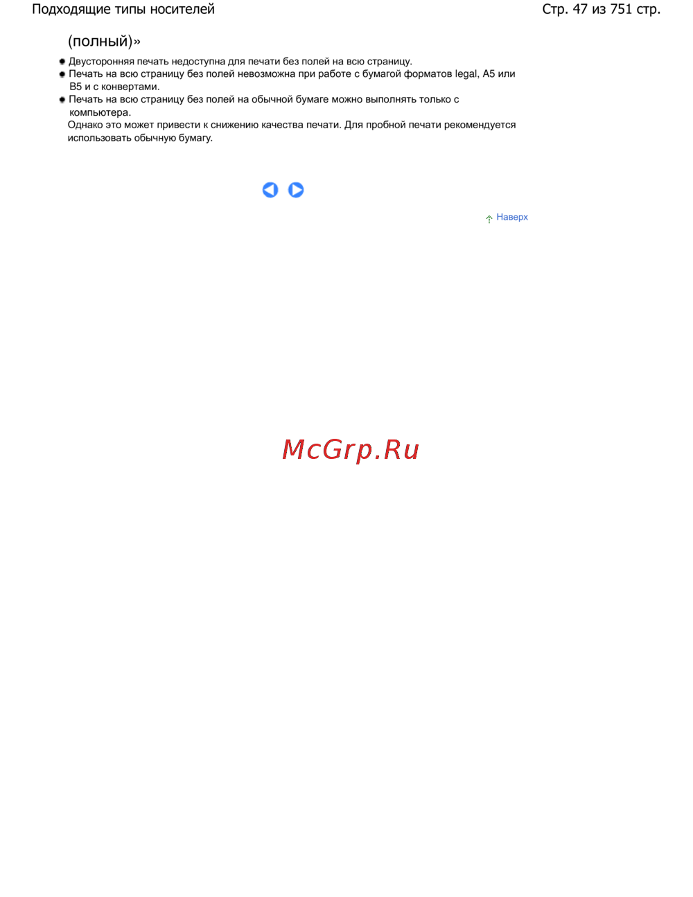 Печать на всю страницу без полей невозможна при работе с бумагой форматов legal, A5 или