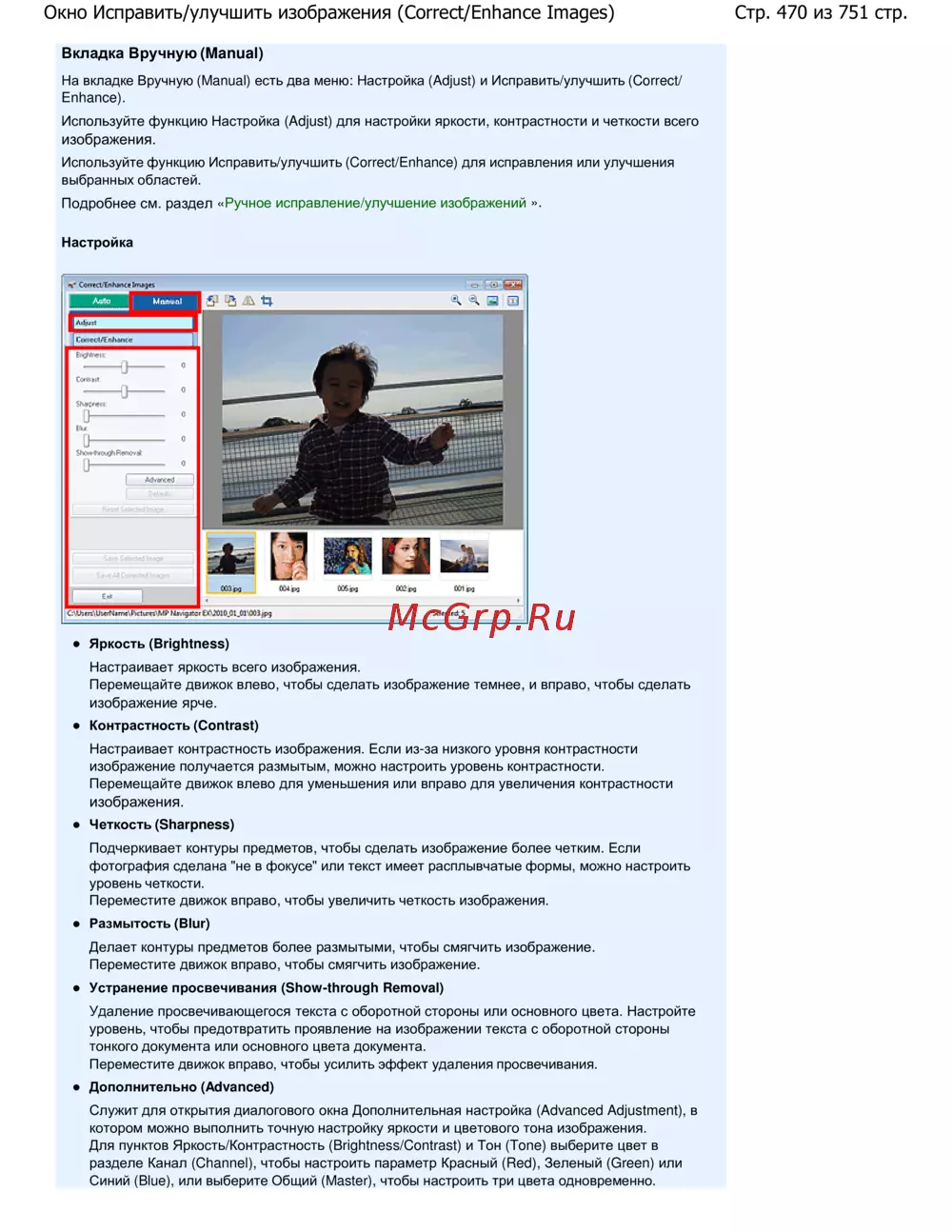 Стр. 470 из 751 стр.Окно Исправить/улучшить изображения (Correct/Enhance Images)