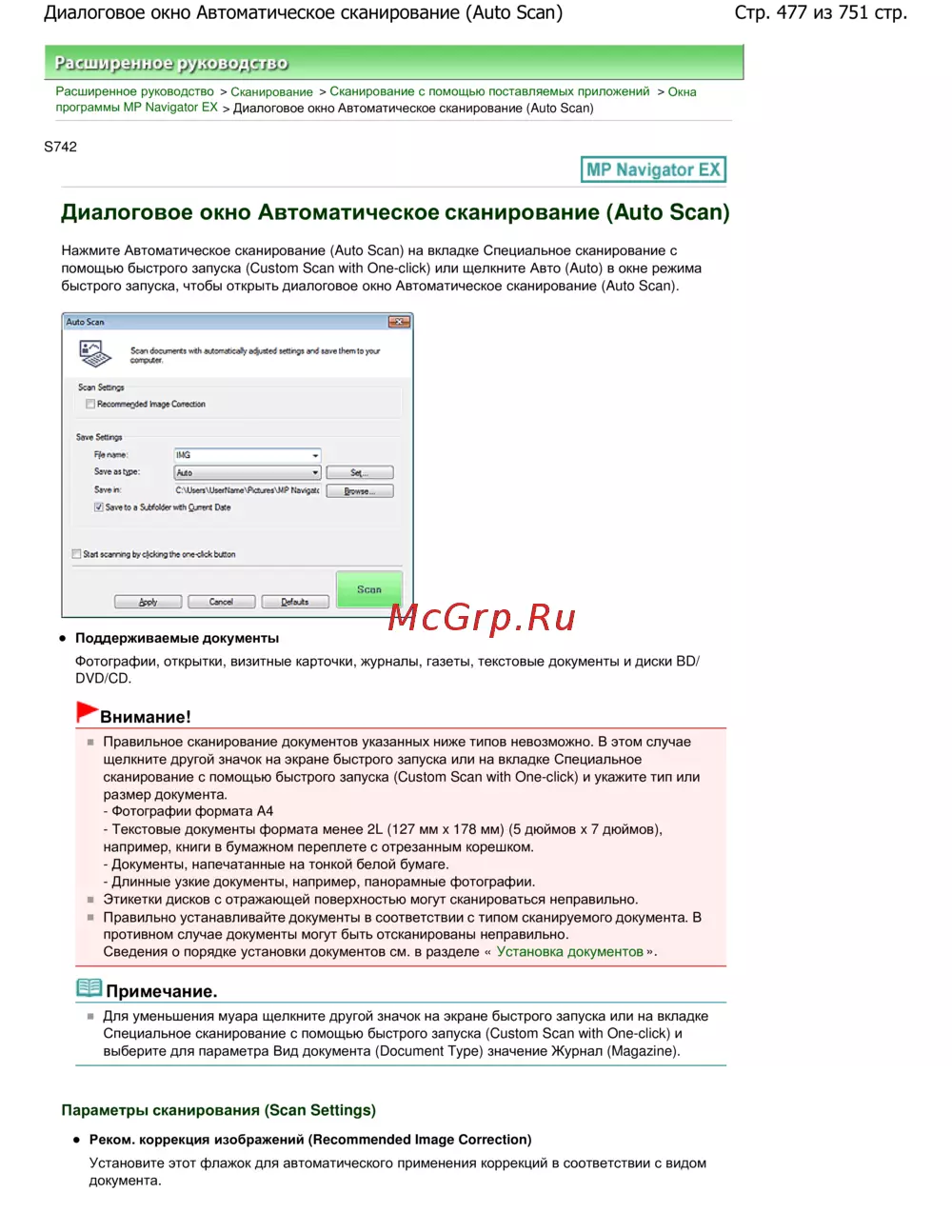 Стр. 477 из 751 стр.Диалоговое окно Автоматическое сканирование (Auto Scan)