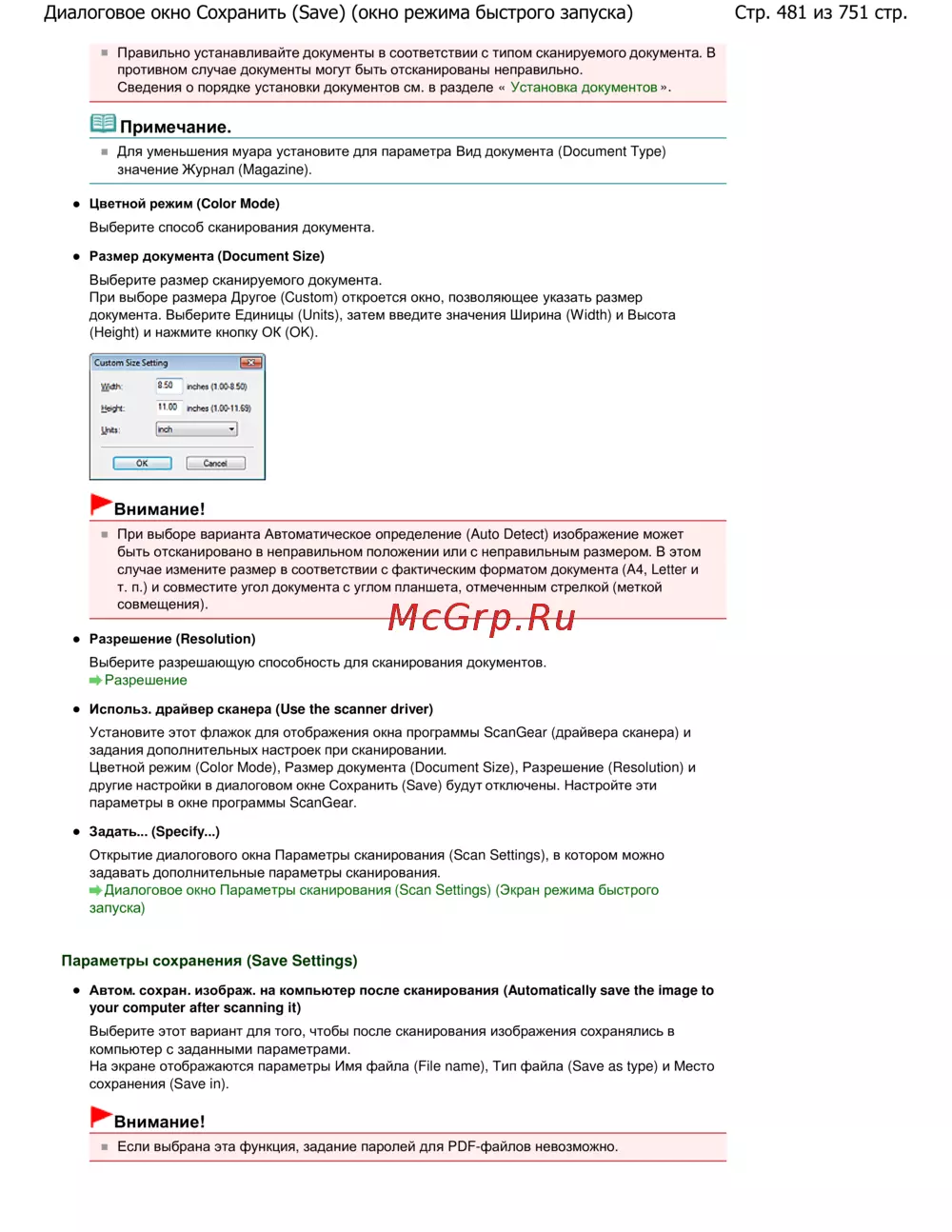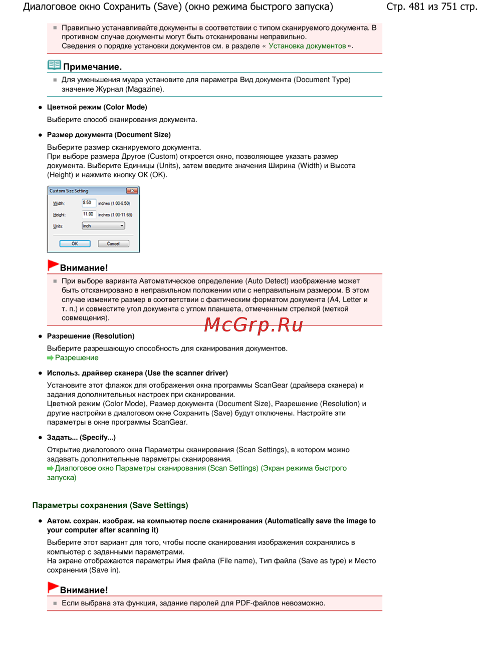 - Сканирование больших документов p.750