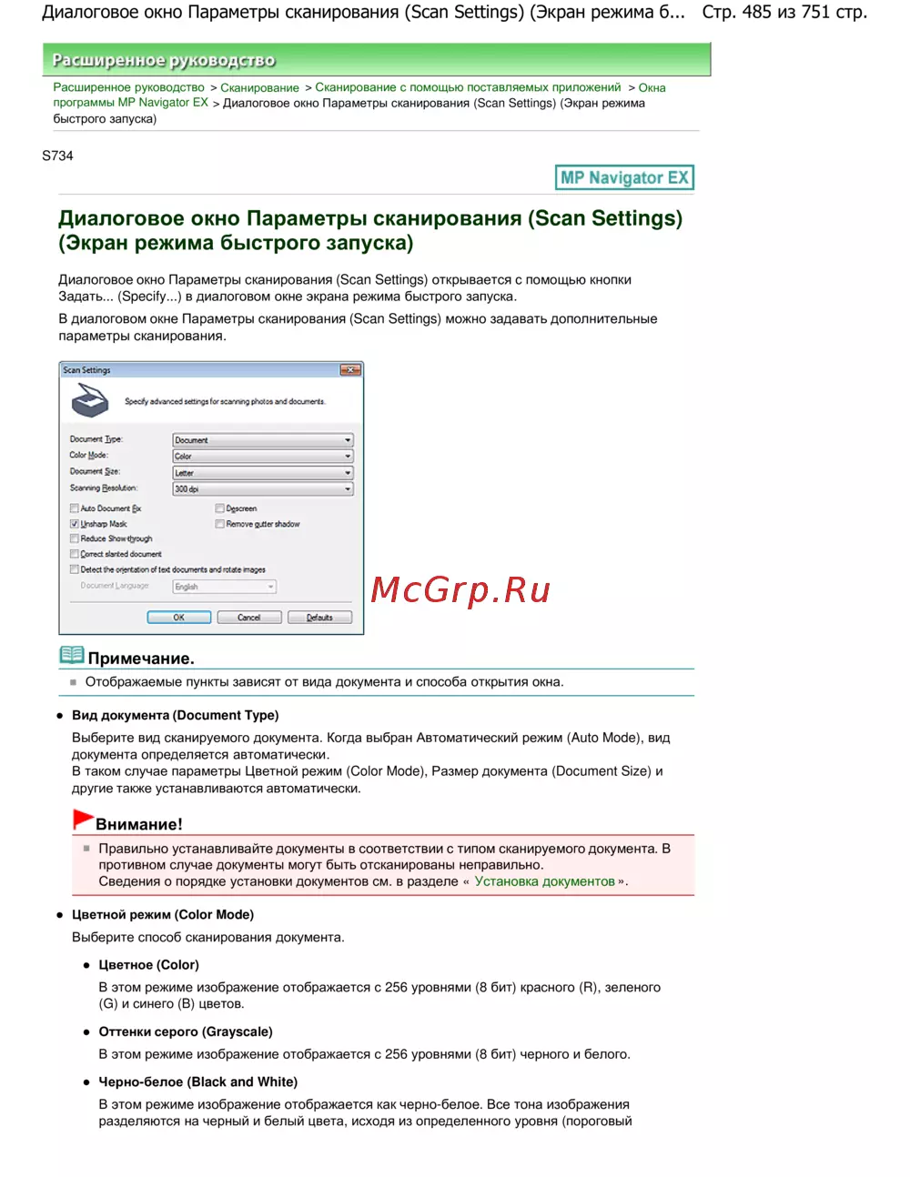 Canon Pixma MP280 — полное руководство по параметрам сканирования документов [485/751]