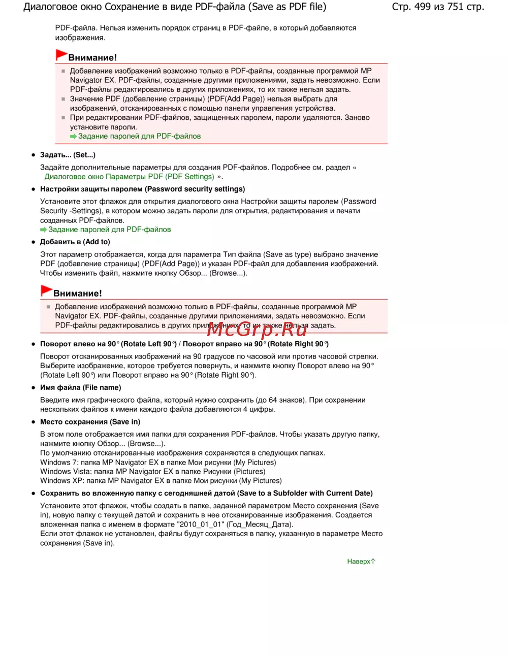 Стр. 499 из 751 стр.Диалоговое окно Сохранение в виде PDF-файла (Save as PDF file)
