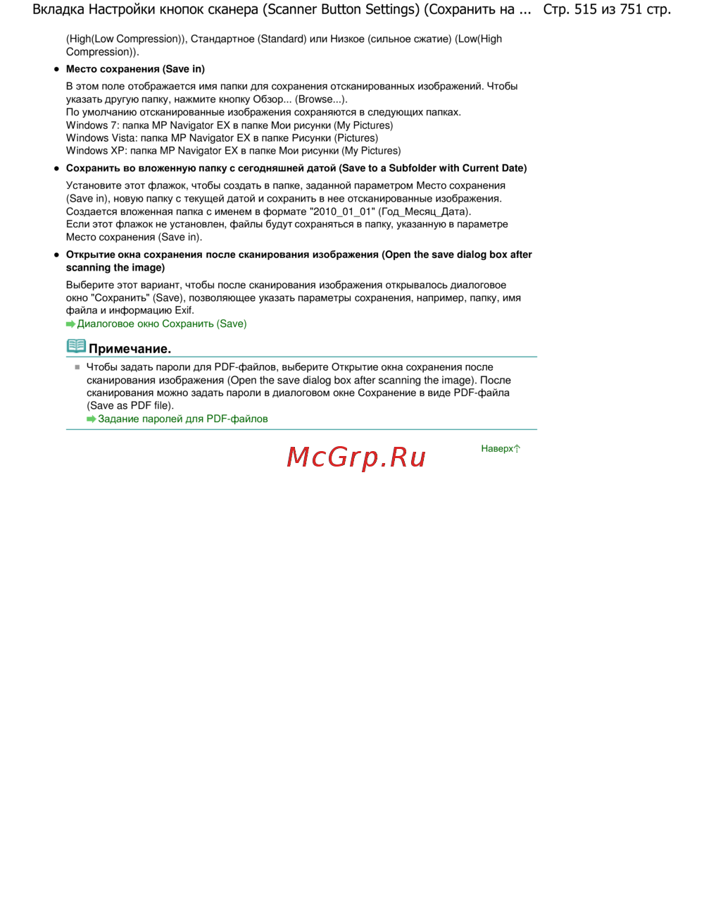 Стр. 515 из 751 стр.Вкладка Настройки кнопок сканера (Scanner Button Settings) (Сохранить на ...