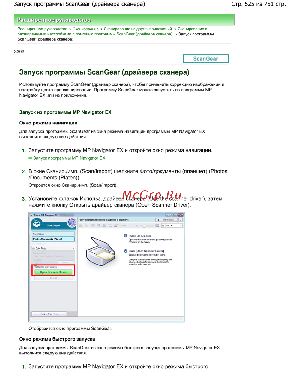 Стр. 525 из 751 стр.Запуск программы ScanGear (драйвера сканера)