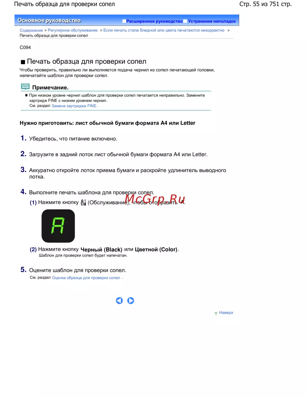 Стр. 55 из 751 стр.Печать образца для проверки сопел