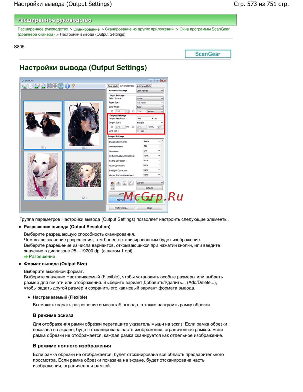 Canon Pixma MP280 — настройки вывода для сканирования: руководство по параметрам [573/751]