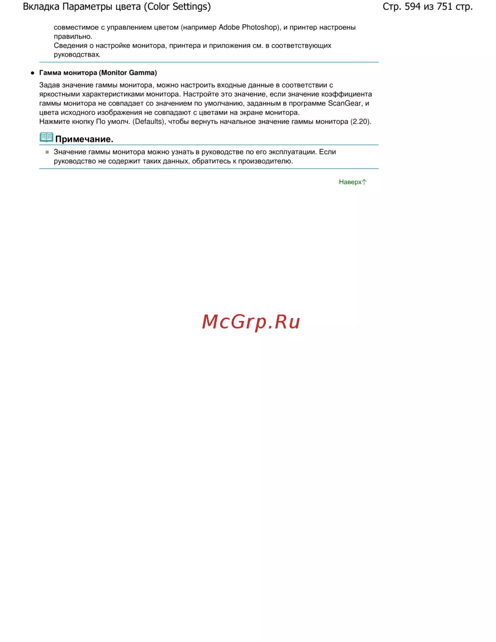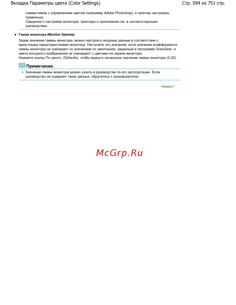 гаммы монитора не совпадает со значением по умолчанию, заданным в программе ScanGear, и