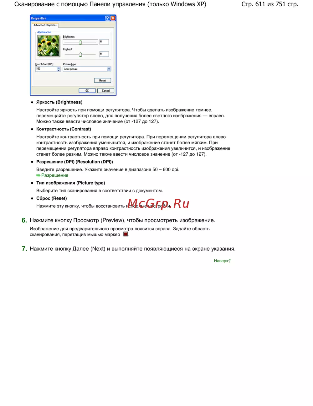 Стр. 611 из 751 стр.Сканирование с помощью Панели управления (только Windows XP)