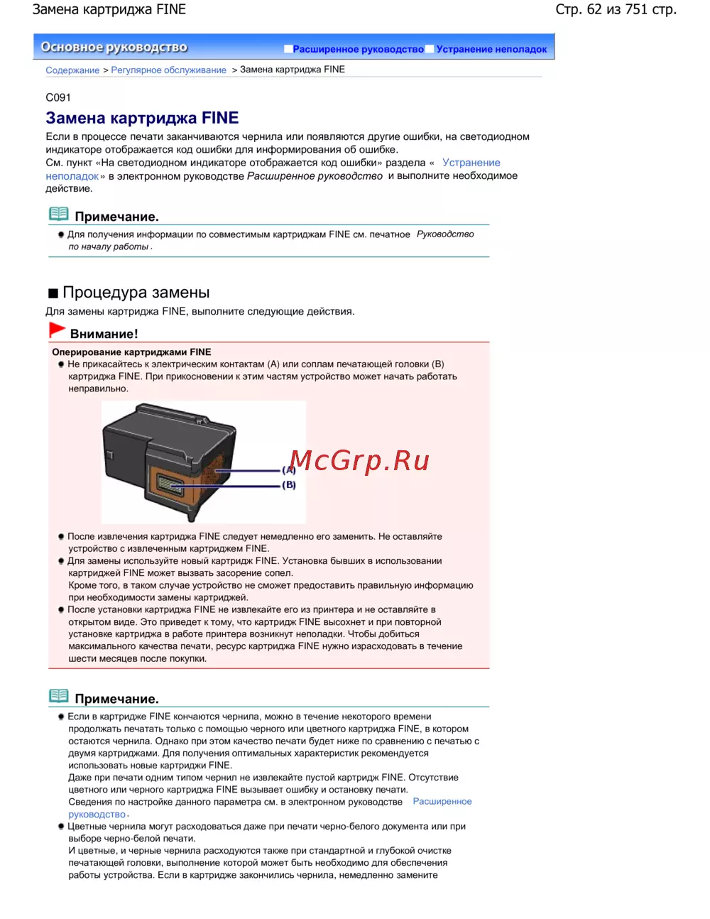 Стр. 62 из 751 стр.Замена картриджа FINE