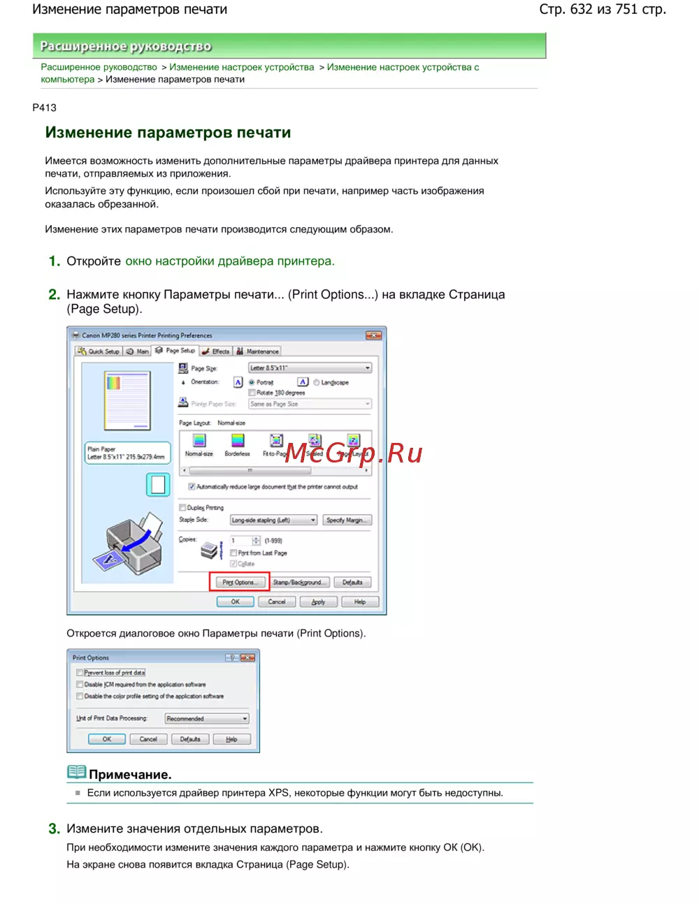 - Стр 737 из 751 стр открытие окна настройки драйвера принтера p.737