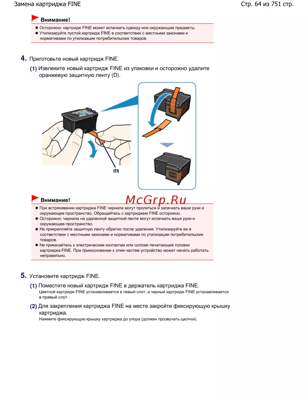 Стр. 64 из 751 стр.Замена картриджа FINE