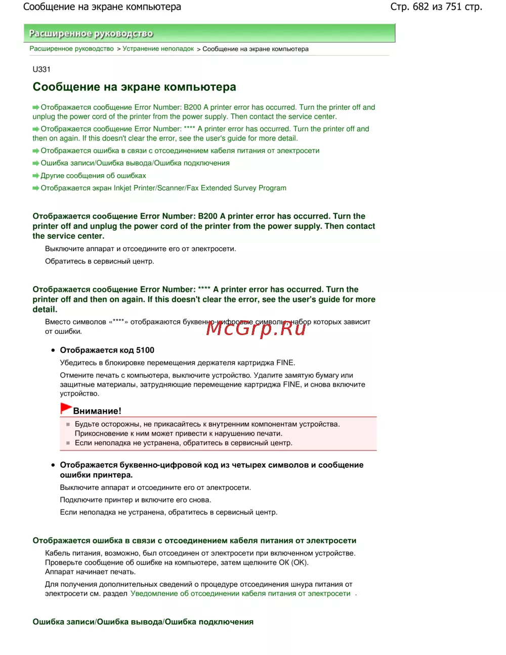 Canon Pixma MP280 — устранение ошибок принтера: полное руководство по решению проблем [682/751]