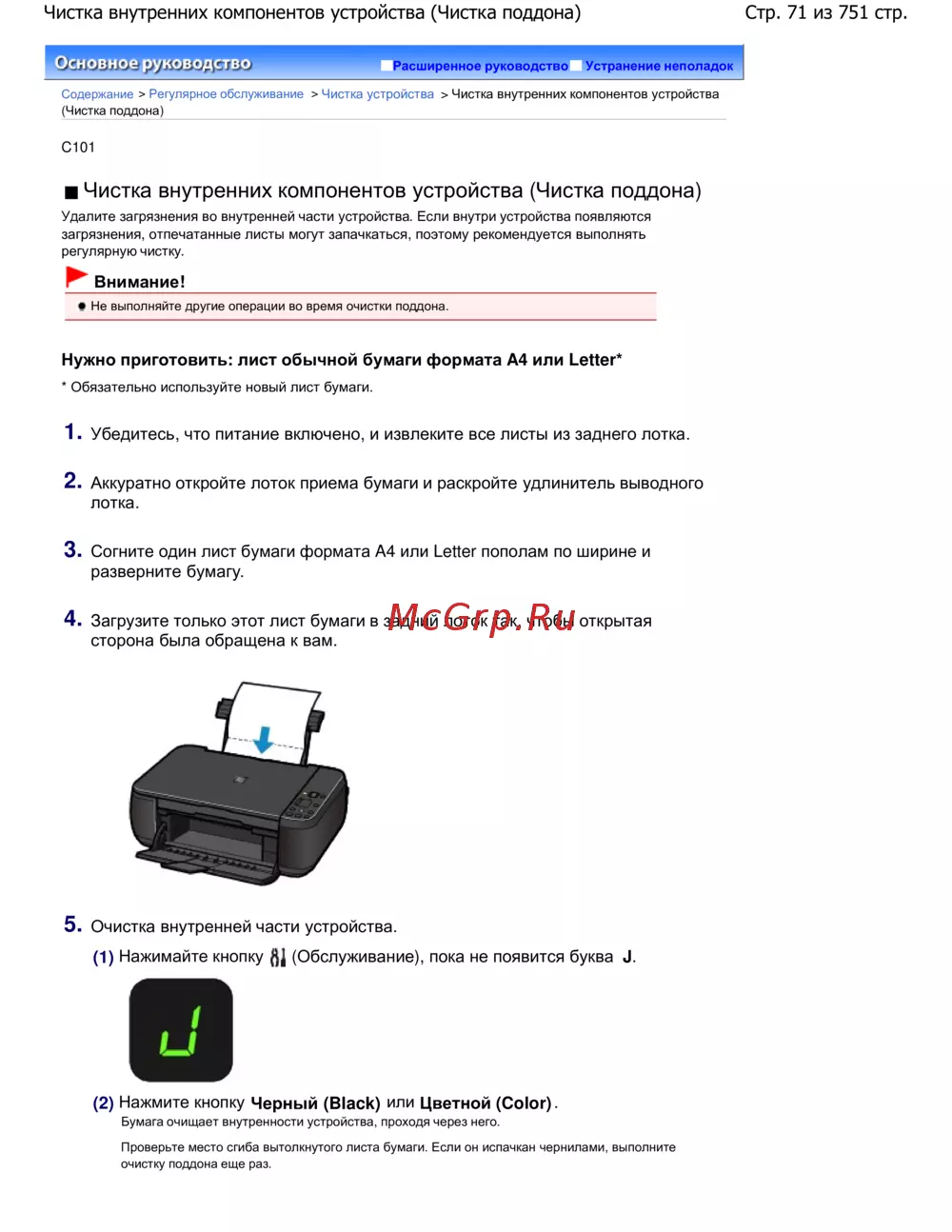 Стр. 71 из 751 стр.Чистка внутренних компонентов устройства (Чистка поддона)