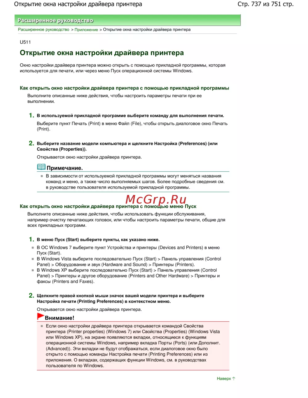 - Стр 737 из 751 стр открытие окна настройки драйвера принтера p.737