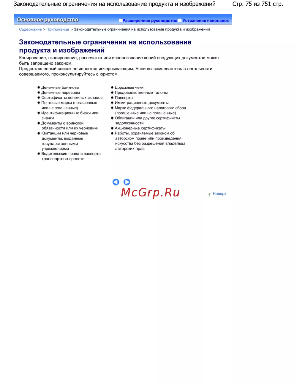 Стр. 75 из 751 стр.Законодательные ограничения на использование продукта и изображений