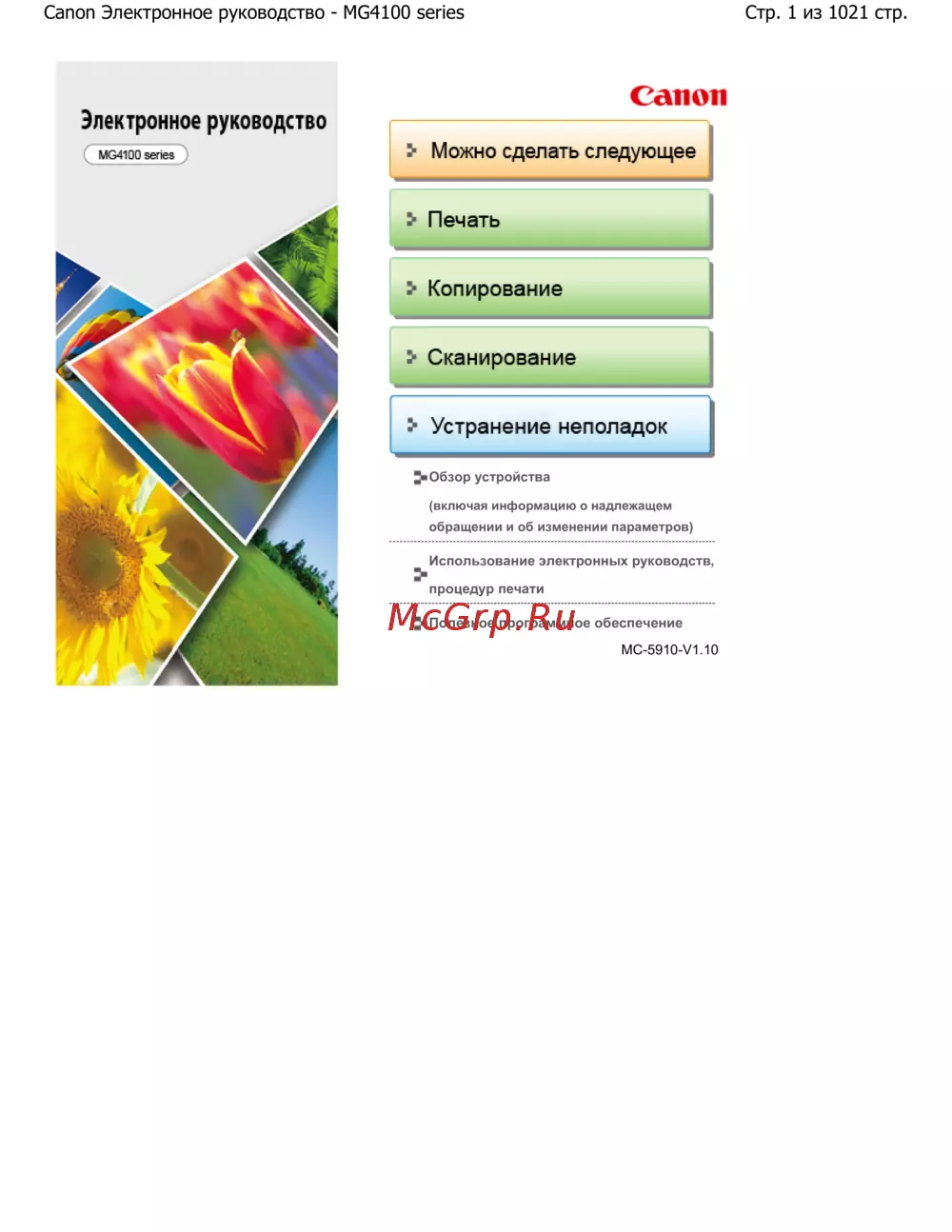 Стр. 1 из 1021 стр.Canon Электронное руководство - MG4100 series