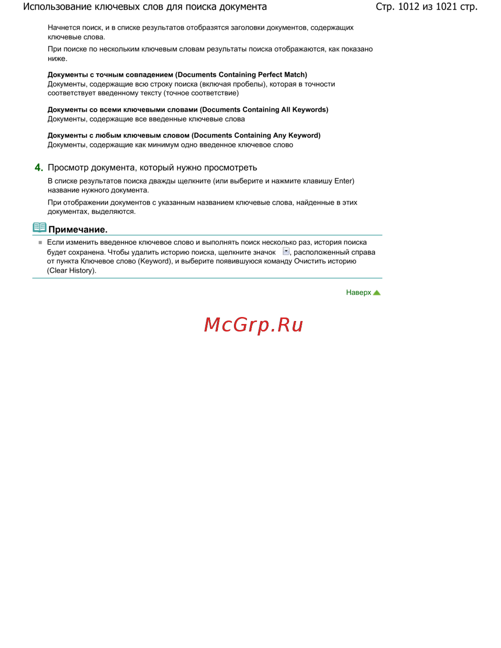 Стр. 1012 из 1021 стр.Использование ключевых слов для поиска документа