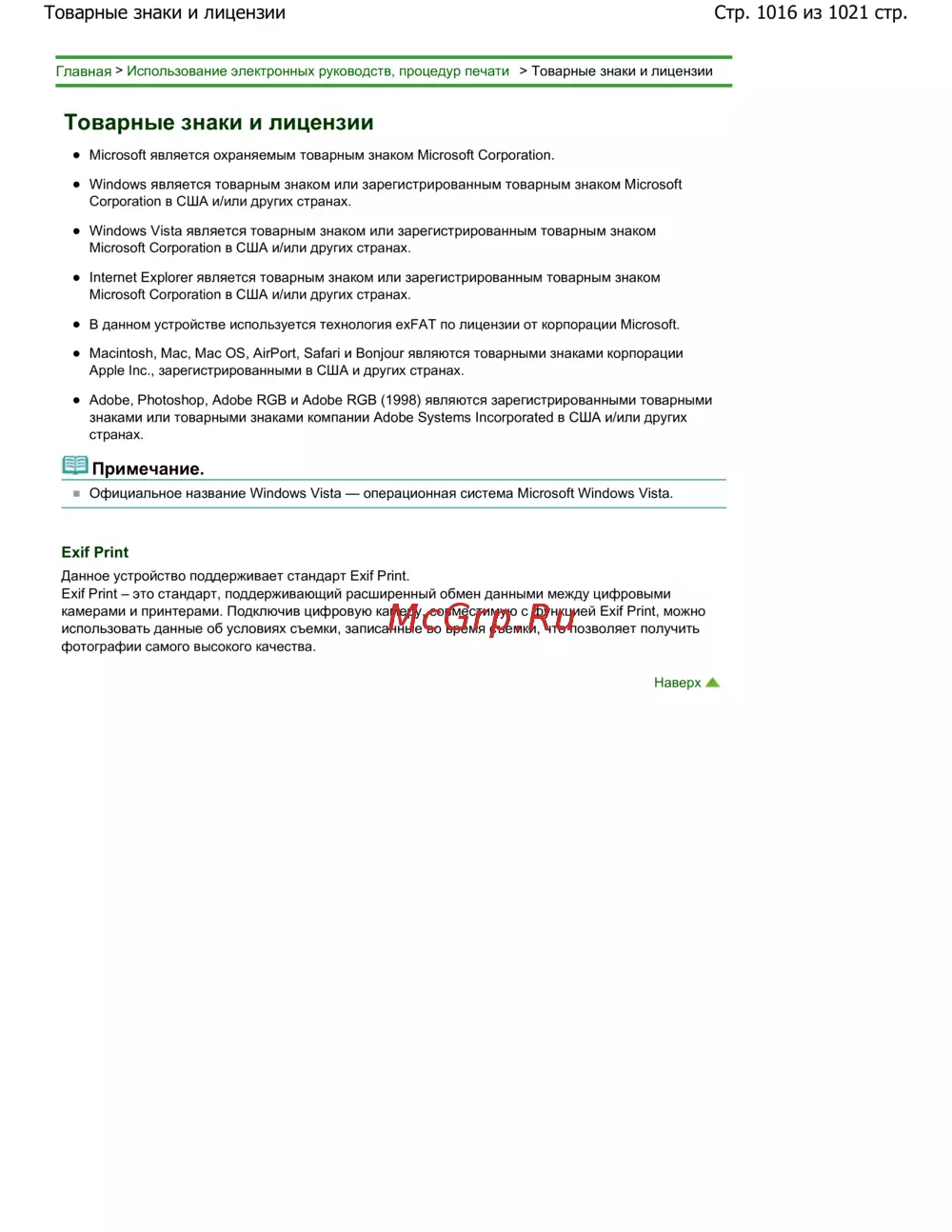 Использование электронных руководств, процедур печати > Товарные знаки и лицензии