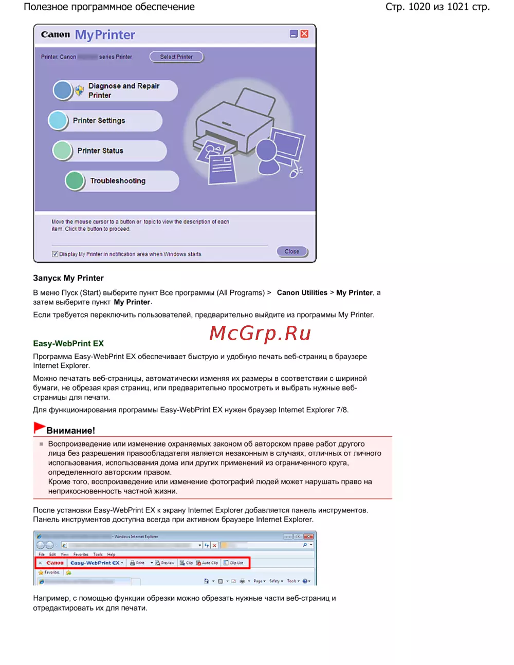 Canon Pixma MP280Руководство по программе My Image Garden (Windows) -