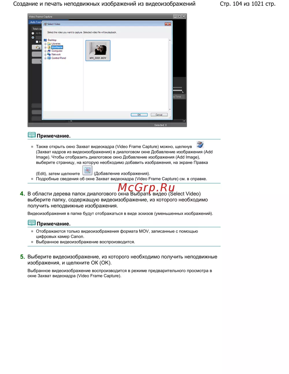 Canon Pixma MG4140 — как захватить неподвижные изображения из видеофайлов [104/1021]