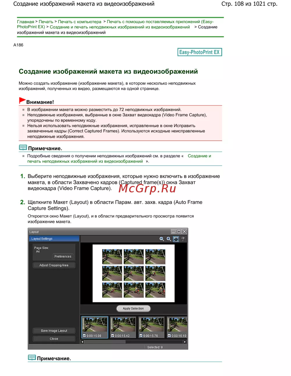 Canon Pixma MG4140 — создание изображений макета из видеоизображений для печати [108/1021]
