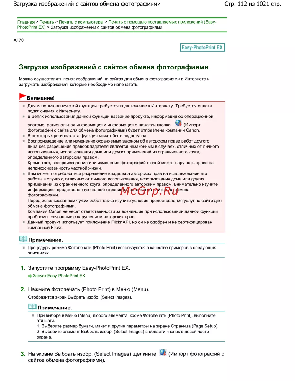 Canon Pixma MG4140 — как загружать изображения для печати с сайтов обмена фотографиями [112/1021]