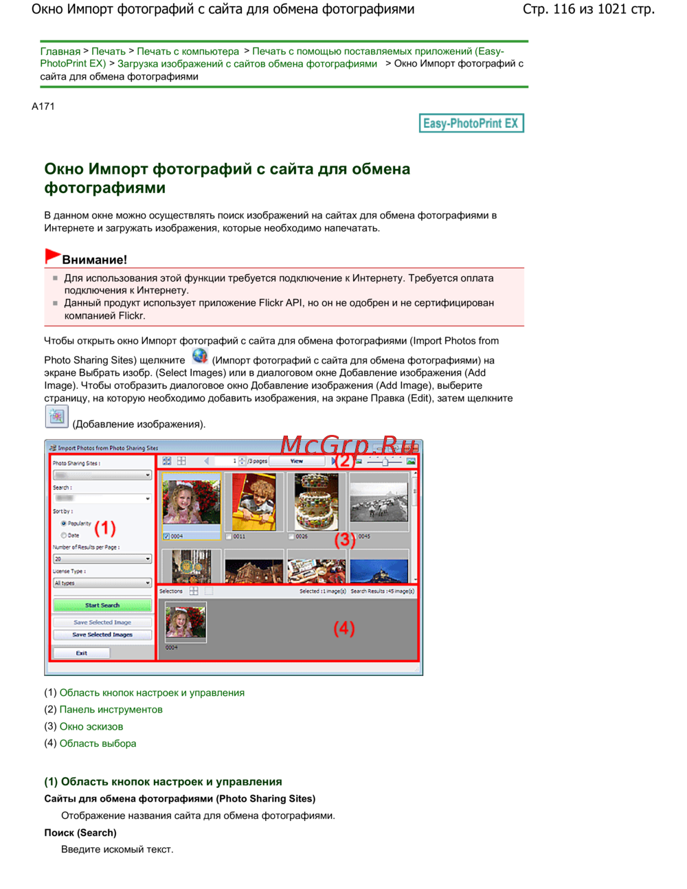Canon Pixma MG4140 — печать изображений с сайтов обмена фотографиями через приложение [116/1021]