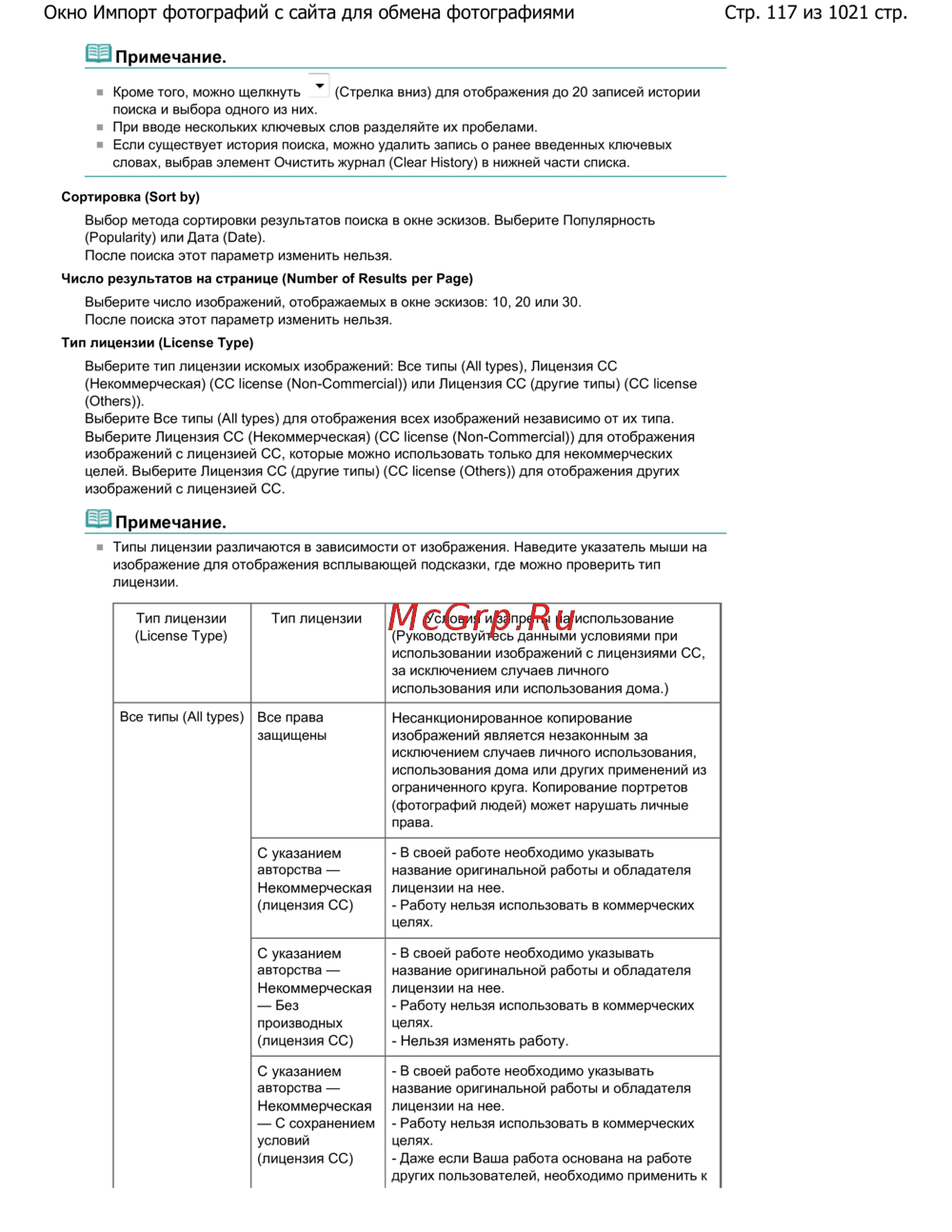 Canon Pixma MG4140 — как использовать историю поиска и лицензии на изображения [117/1021]