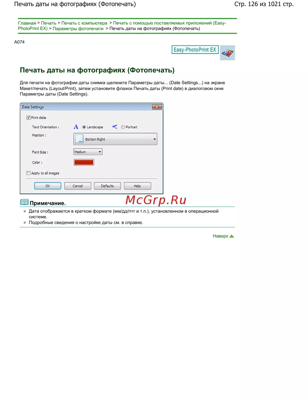 Стр. 126 из 1021 стр.Печать даты на фотографиях (Фотопечать)