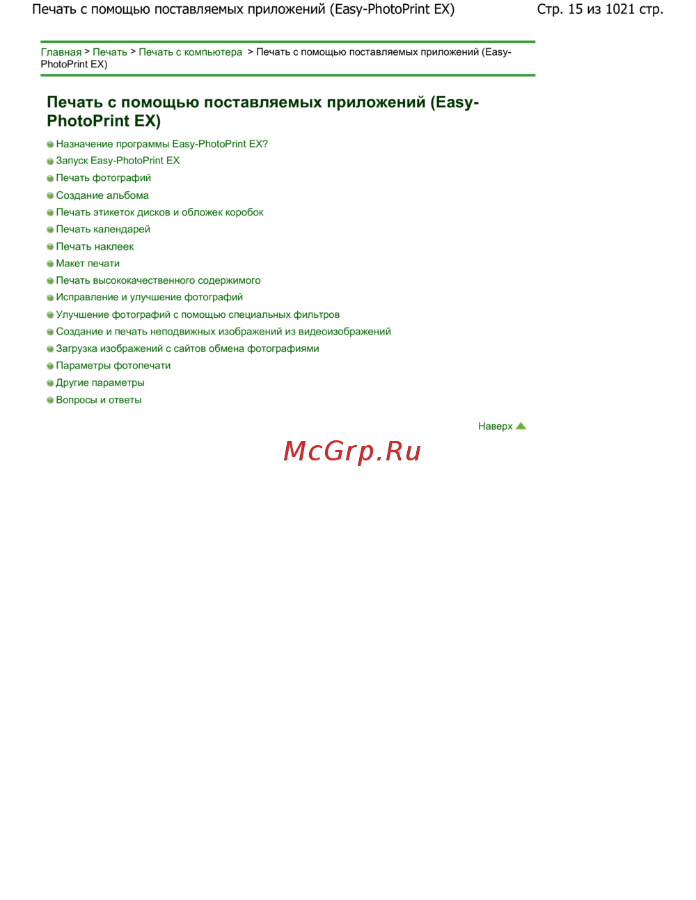Стр. 15 из 1021 стр.Печать с помощью поставляемых приложений (Easy-PhotoPrint EX)
