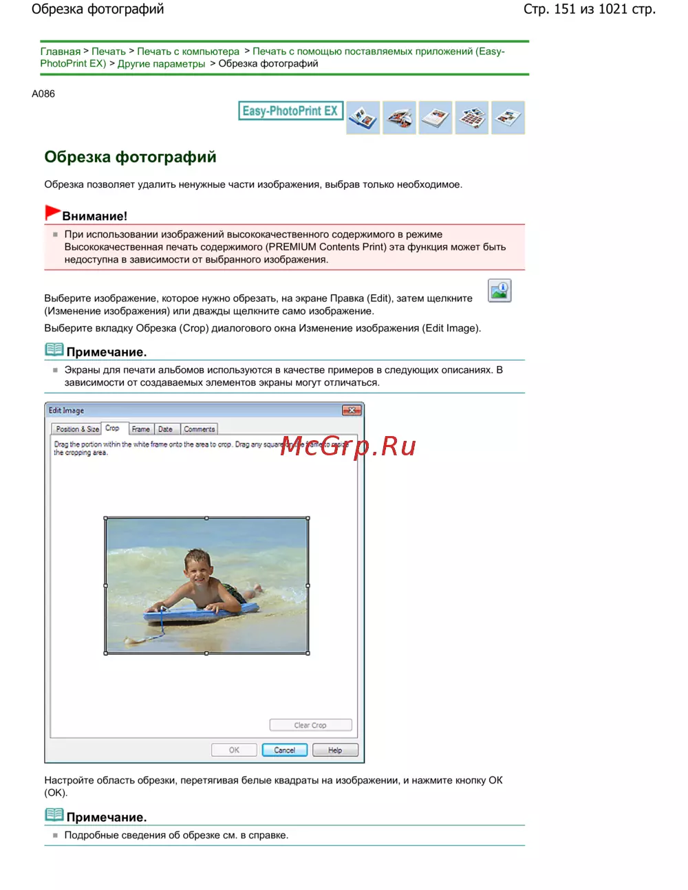 Canon Pixma MG4140 — как обрезать фотографии для печати с компьютера [151/1021]
