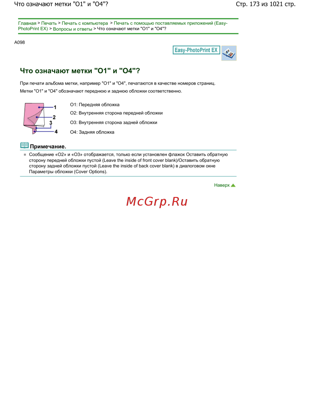 Canon Pixma MG4140 — объяснение меток O1 и O4 при печати альбома [173/1021]