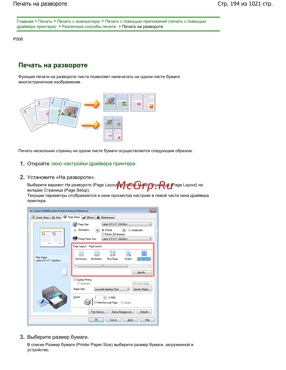 Canon Pixma MG4140 — как настроить печать на развороте для многостраничных изображений [194/1021]