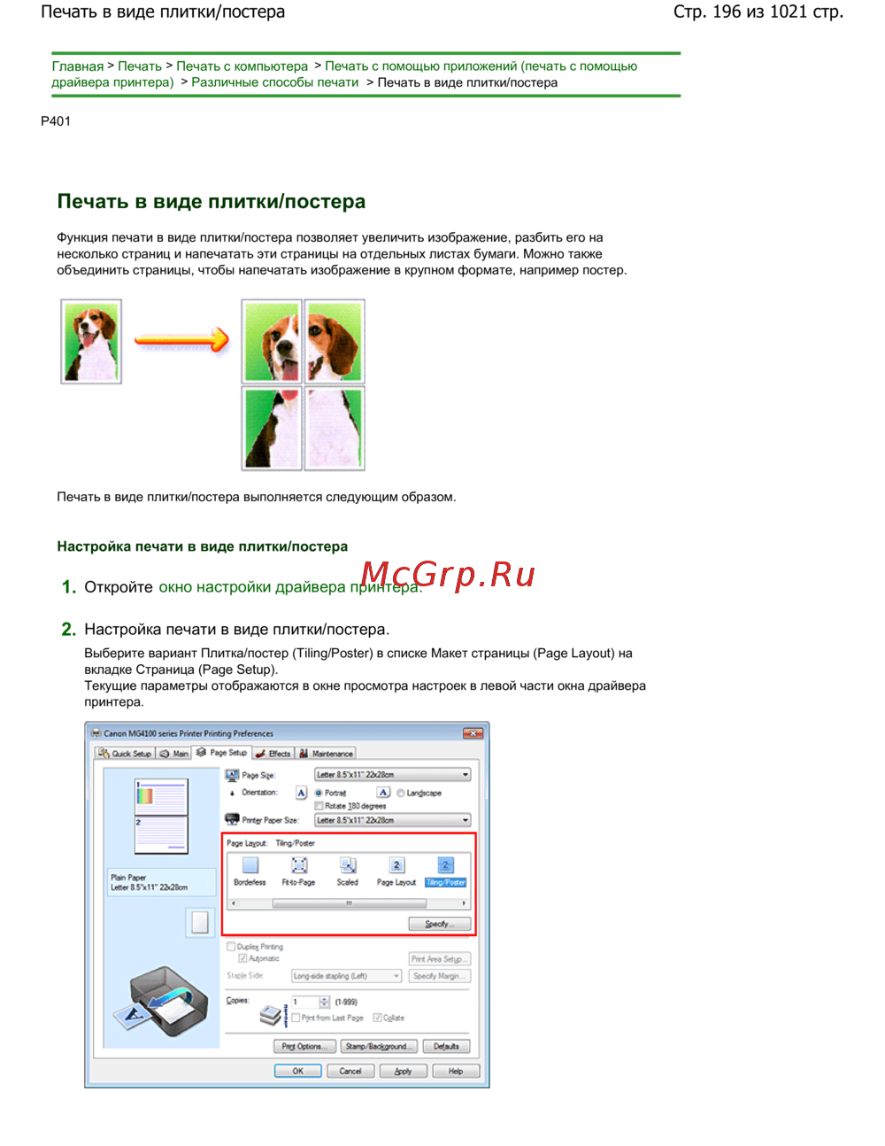 Canon Pixma MG4140 — как настроить печать в виде плитки или постера [196/1021]