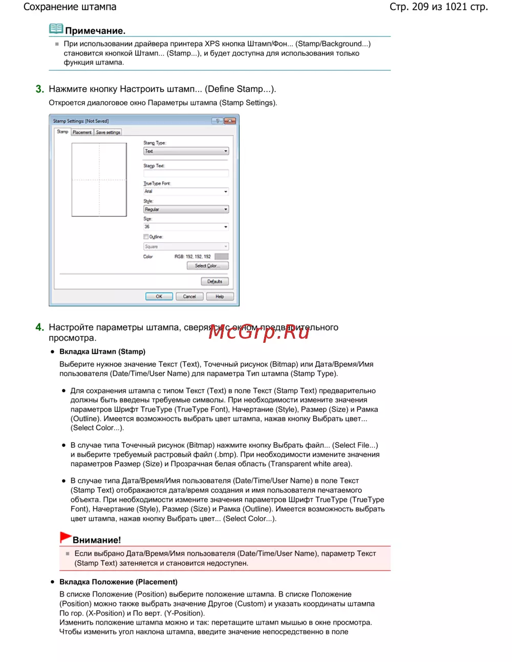 Canon Pixma MG4140 — настройка штампов в драйвере принтера XPS: пошаговое руководство [209/1021]