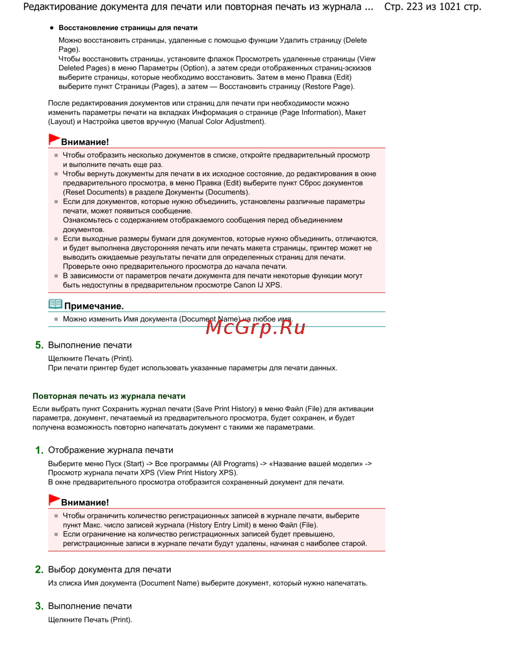 Стр. 223 из 1021 стр.Редактирование документа для печати или повторная печать из журнала ...