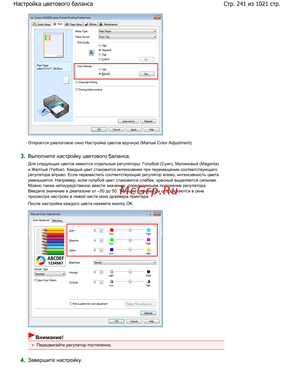 Canon Pixma MG4140 — настройка цветового баланса: ручные корректировки цветов [241/1021]