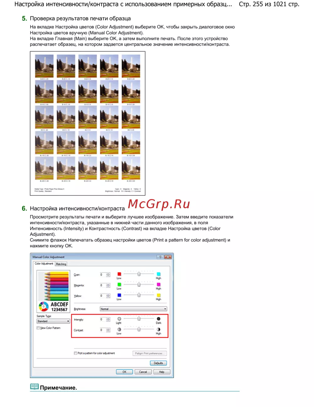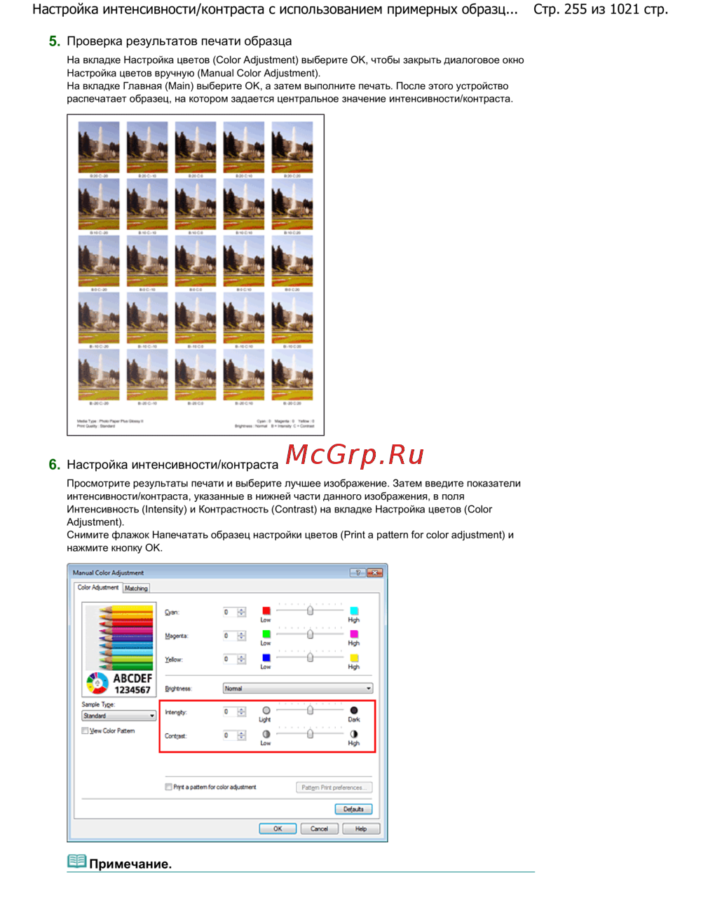 Стр. 255 из 1021 стр.Настройка интенсивности/контраста с использованием примерных образц...