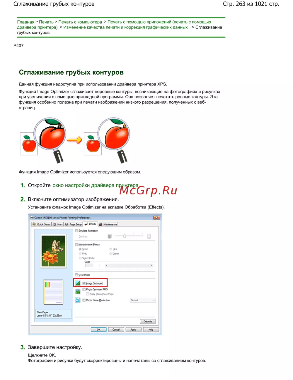 Canon Pixma MG4140 — оптимизация качества печати: сглаживание контуров изображений [263/1021]