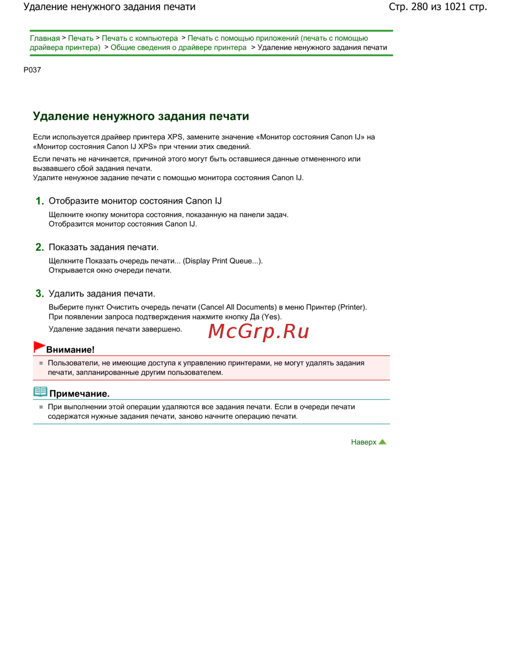 Стр. 280 из 1021 стр.Удаление ненужного задания печати