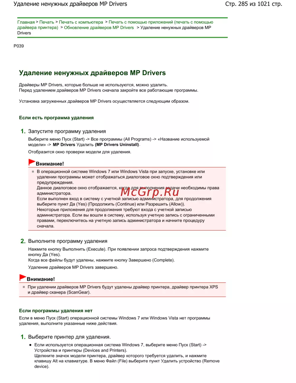 Стр. 285 из 1021 стр.Удаление ненужных драйверов MP Drivers