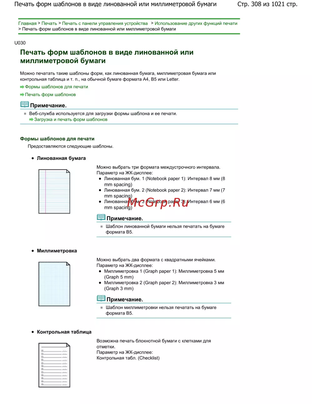 Стр. 308 из 1021 стр.Печать форм шаблонов в виде линованной или миллиметровой бумаги