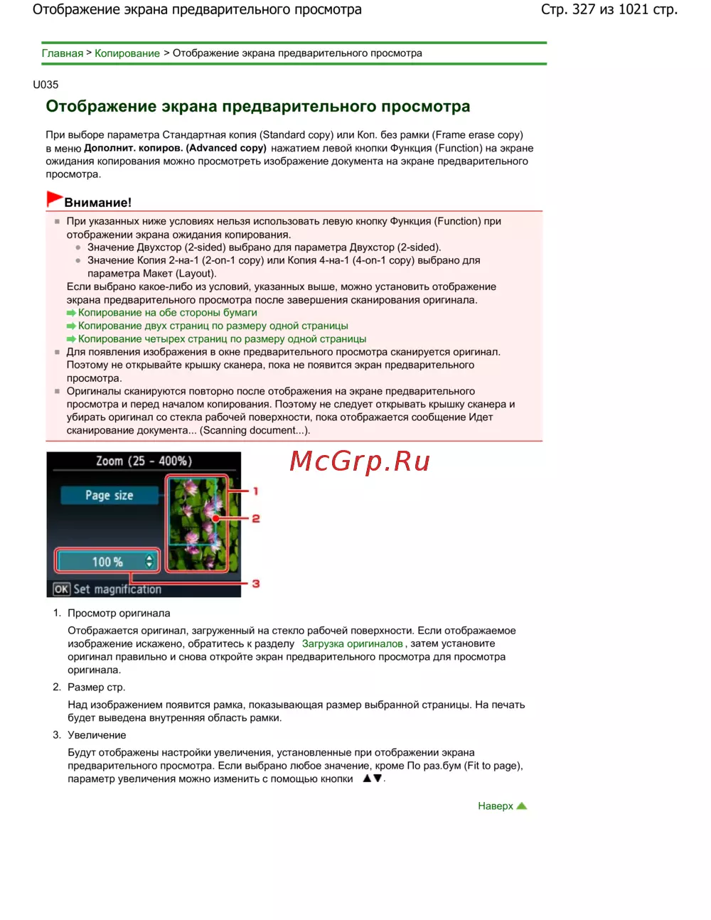 Стр. 327 из 1021 стр.Отображение экрана предварительного просмотра