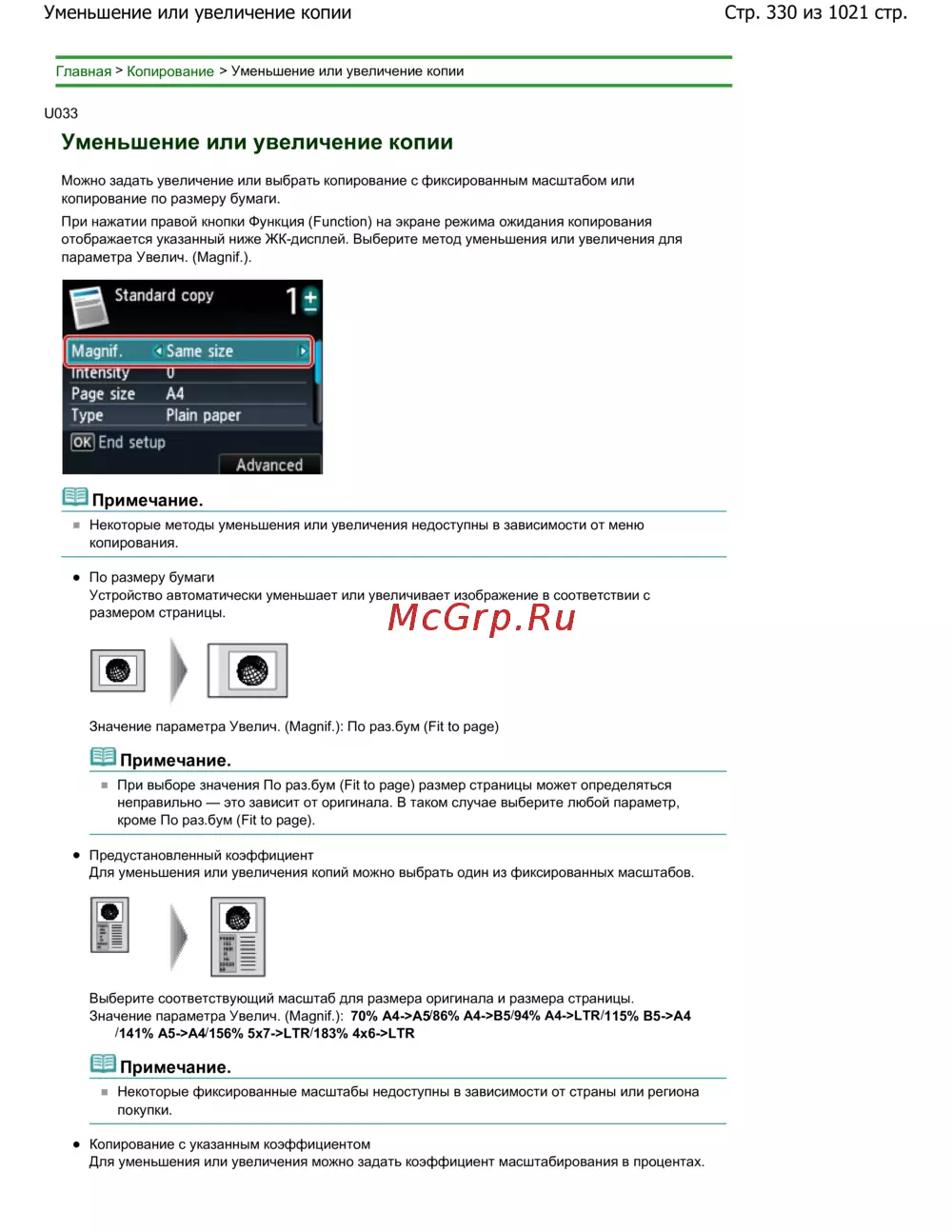 Стр. 330 из 1021 стр.Уменьшение или увеличение копии