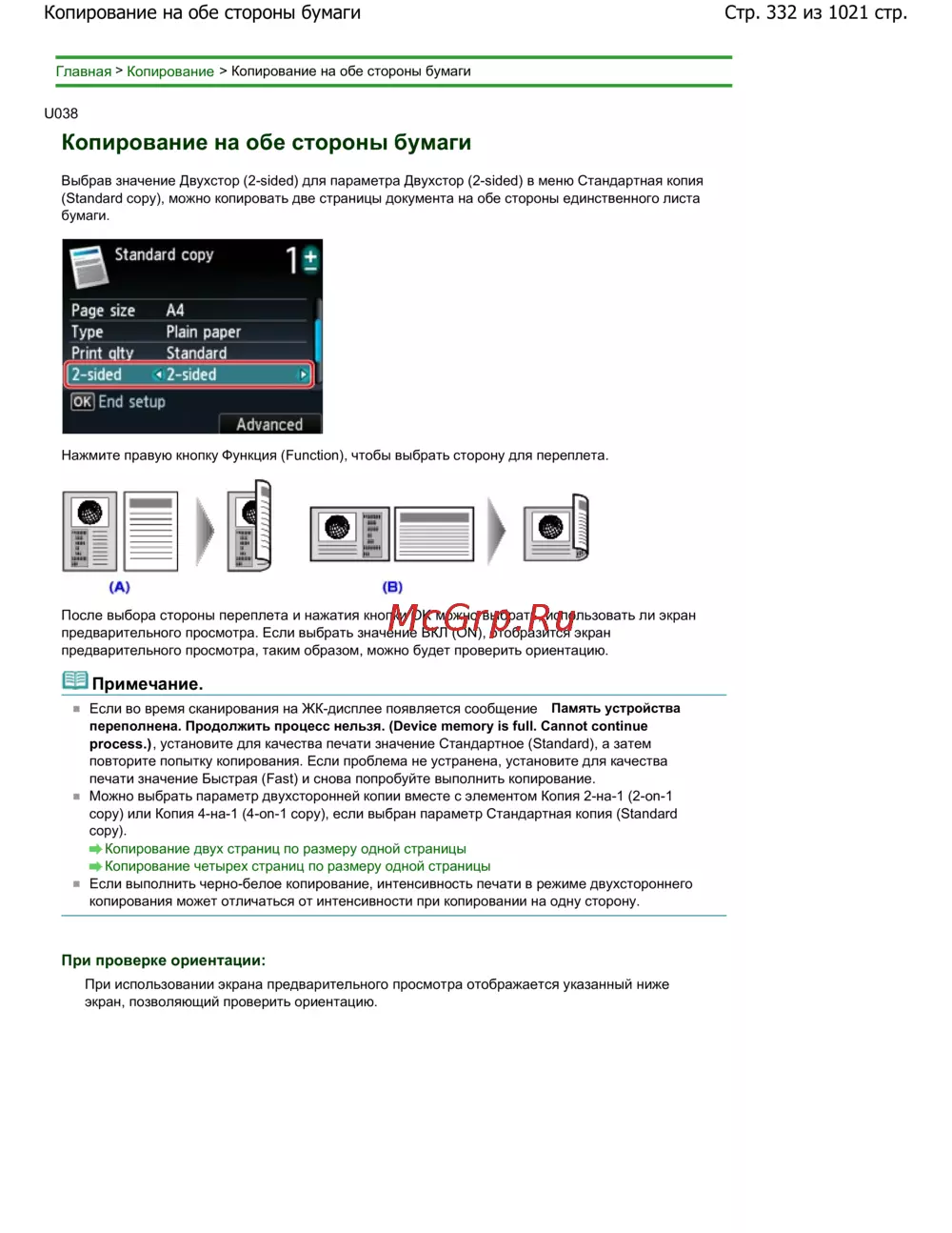 Стр. 332 из 1021 стр.Копирование на обе стороны бумаги