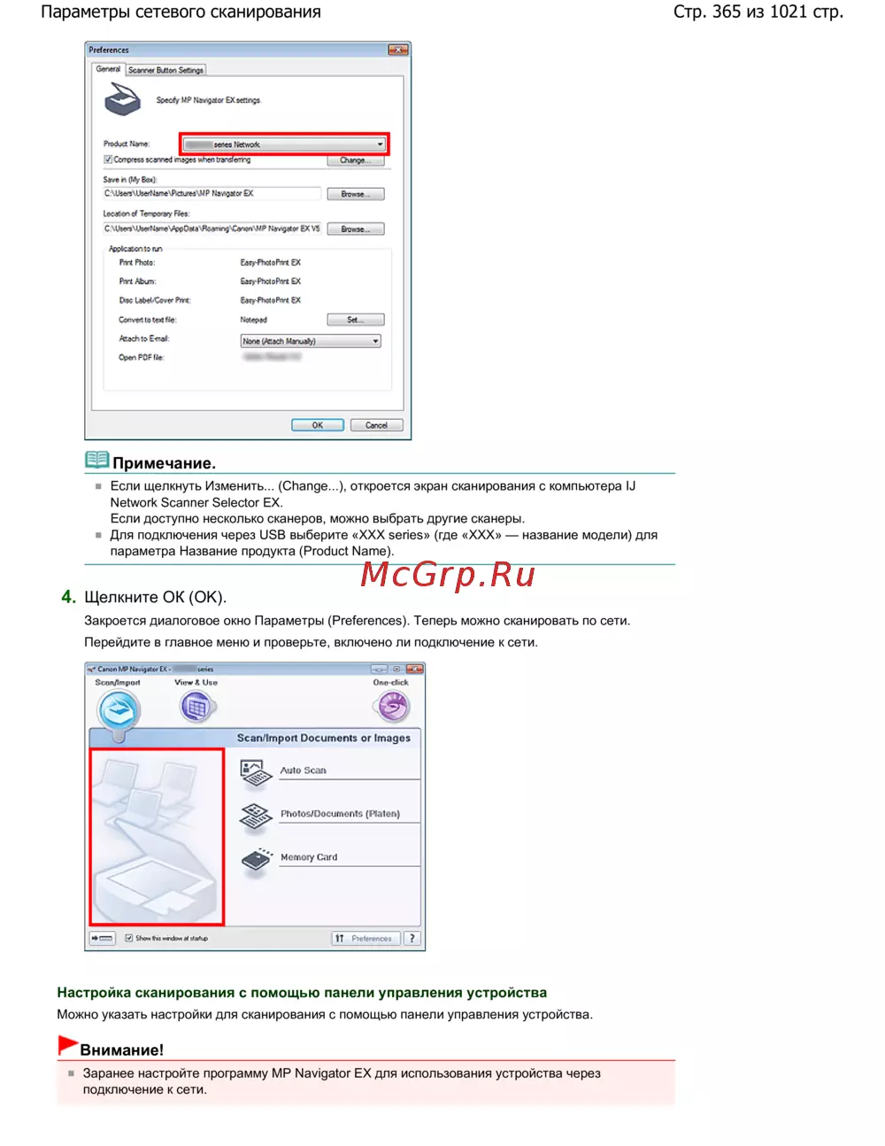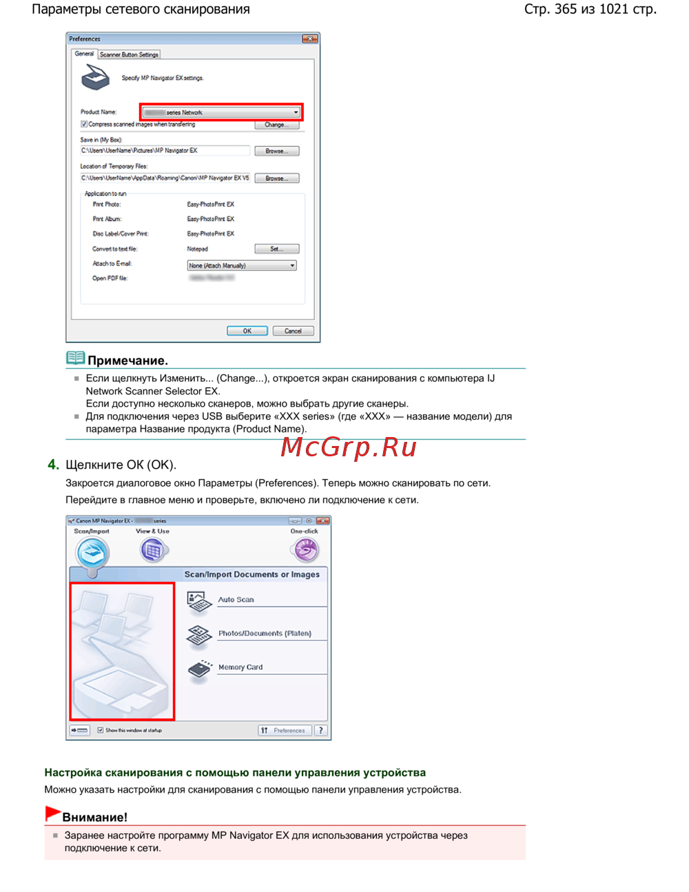 Стр. 365 из 1021 стр.Параметры сетевого сканирования