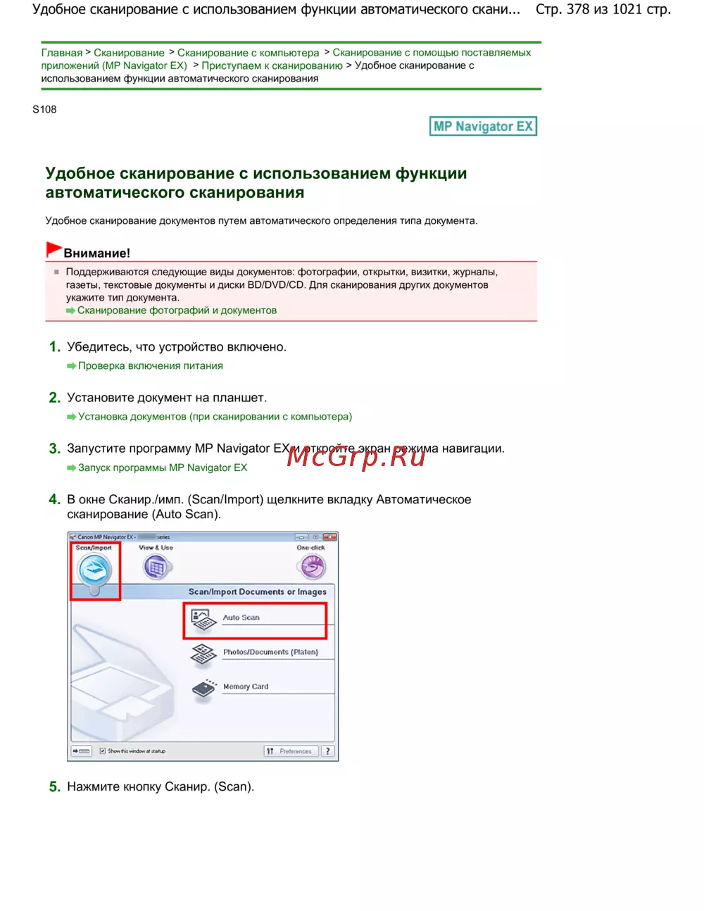 - Приступаем к сканированию с помощью mp navigator ex p.10