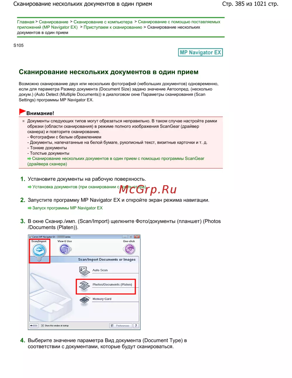Стр. 385 из 1021 стр.Сканирование нескольких документов в один прием